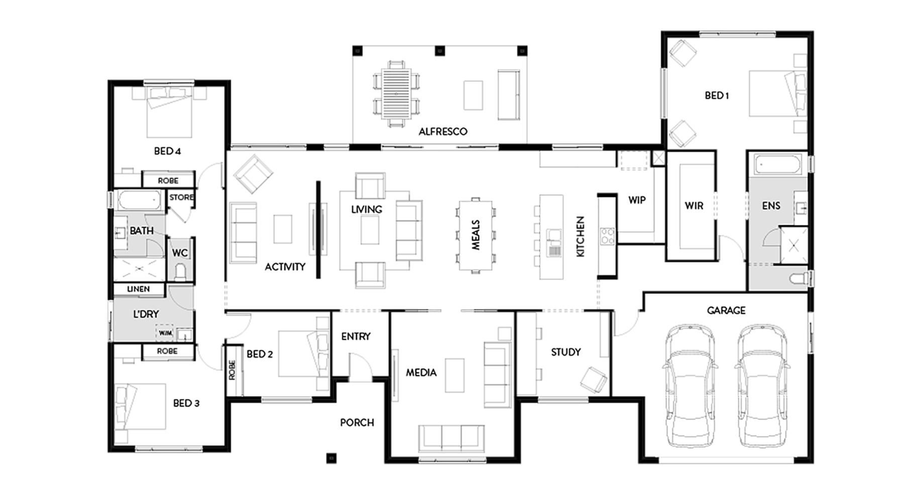 The Fairview 321 is the perfect home design for a larger, acreage-sized block. This spacious home features open-plan family areas, with a large gourmet kitchen and seamless flow between the inside and outside living areas. With four generously sized bedrooms, a master suite situated in its own wing of the house for privacy, separate media and activity rooms, plus a study, this acreage house plan is one of the most functional designs for living on a big block.
