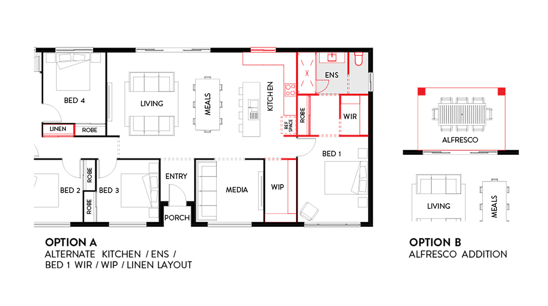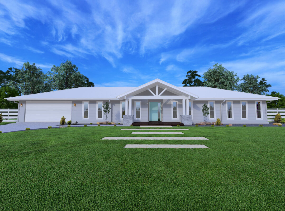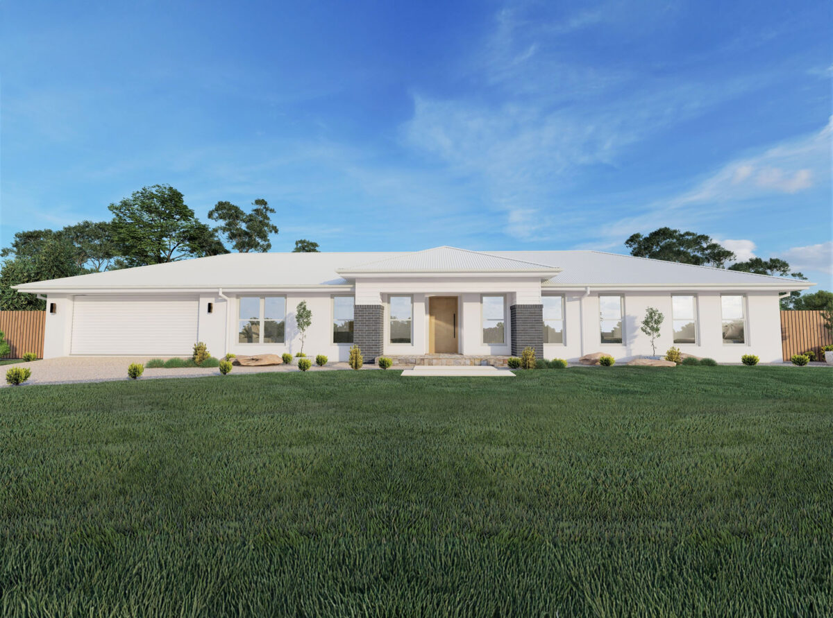 The perfect small acreage home design comes together in the Indiana 199 by Hallmark Homes. The floor plan is designed to make the most out of space for a growing family, with four spacious bedrooms and two bathrooms to suit all families needs. The master suite is a private sanctuary, featuring a large walk-in robe and ensuite. With three additional bedrooms, double garage, large media room and open-plan kitchen and living areas, this impressive small acreage house plan suits anyone who loves a bright, spacious and airy home.