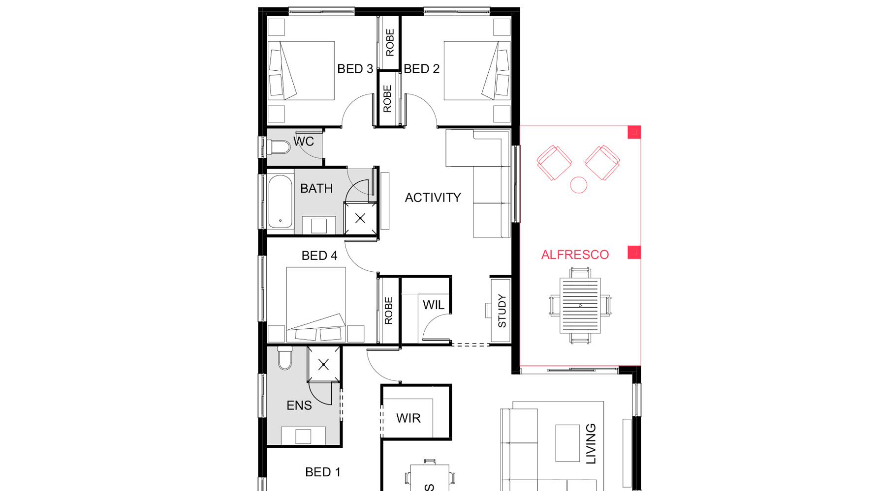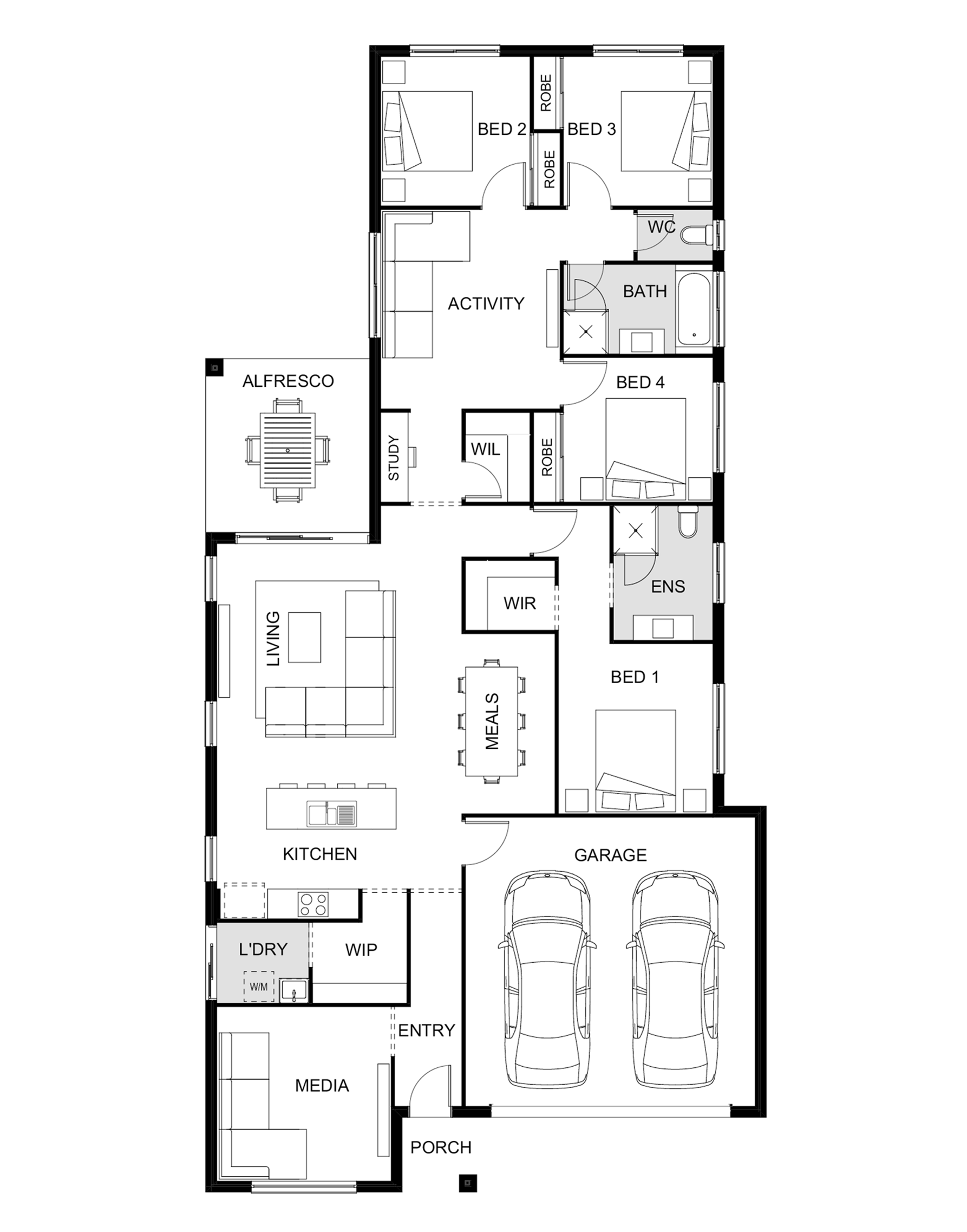 The Byron 216 home design from our innovative Luma range has a fantastic flow throughout with the kitchen leading onto the adjoining living area and generous outdoor space. You’ll love the versatility of this four-bedroom home design with its two bathrooms and three separate living areas that provide ample indoor space for everyone in the family. What’s more, there’s also the option to relax outdoors on the alfresco and enjoy the enviable South East Queensland weather.