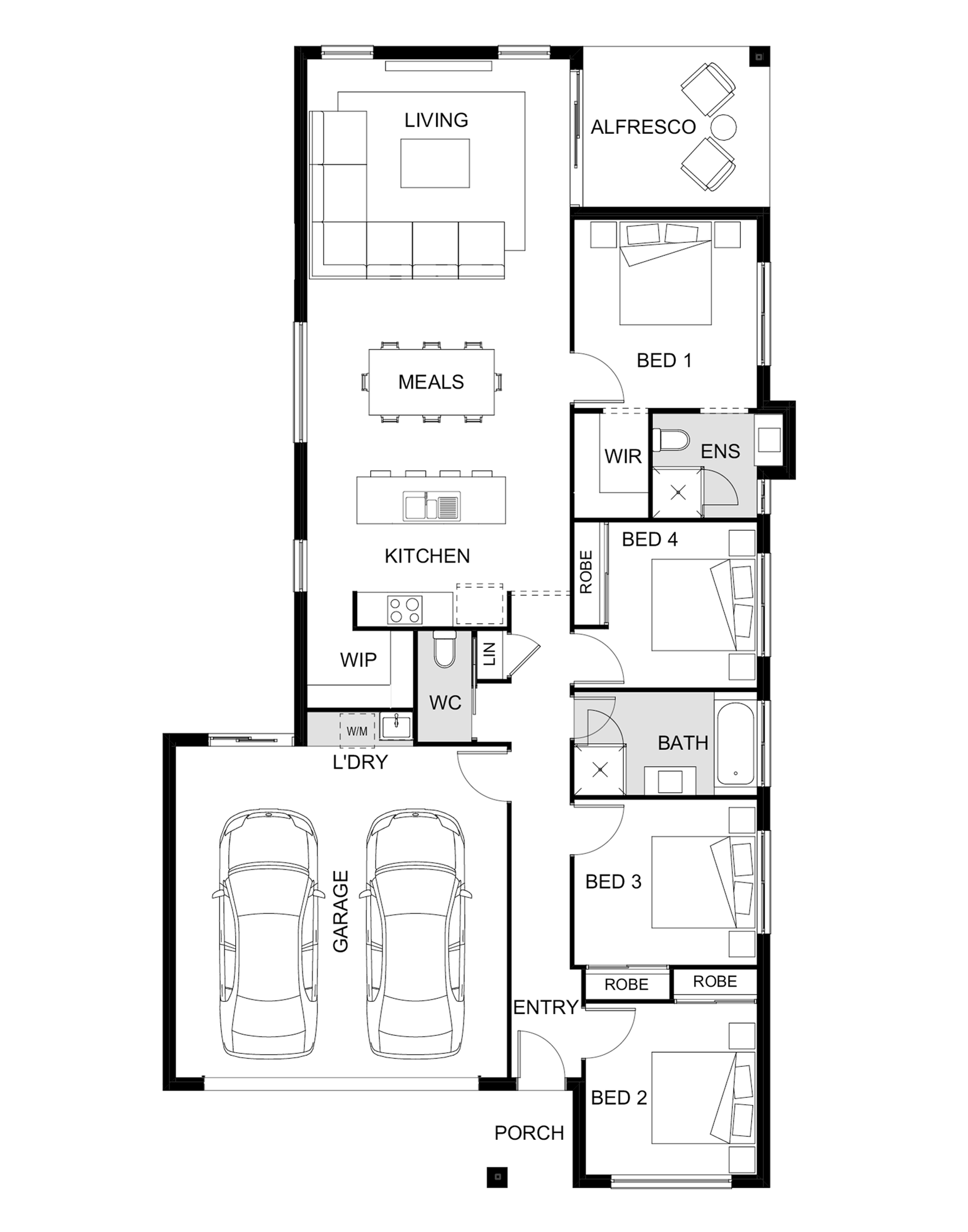 The Miami 175 home design from Hallmark Homes delivers on style and space, making it the perfect family home for living an enviable lifestyle here in South East Queensland. This stunning single-storey house plan features a large open-plan living area and a generous space to provide ample room for everyone to kick back and relax. As a part of our Luma home design range of affordable single-storey homes designed to suit narrow lots, the four-bedroom Miami 175 not only delivers more style and space than similar-sized home designs, but flexibility too.