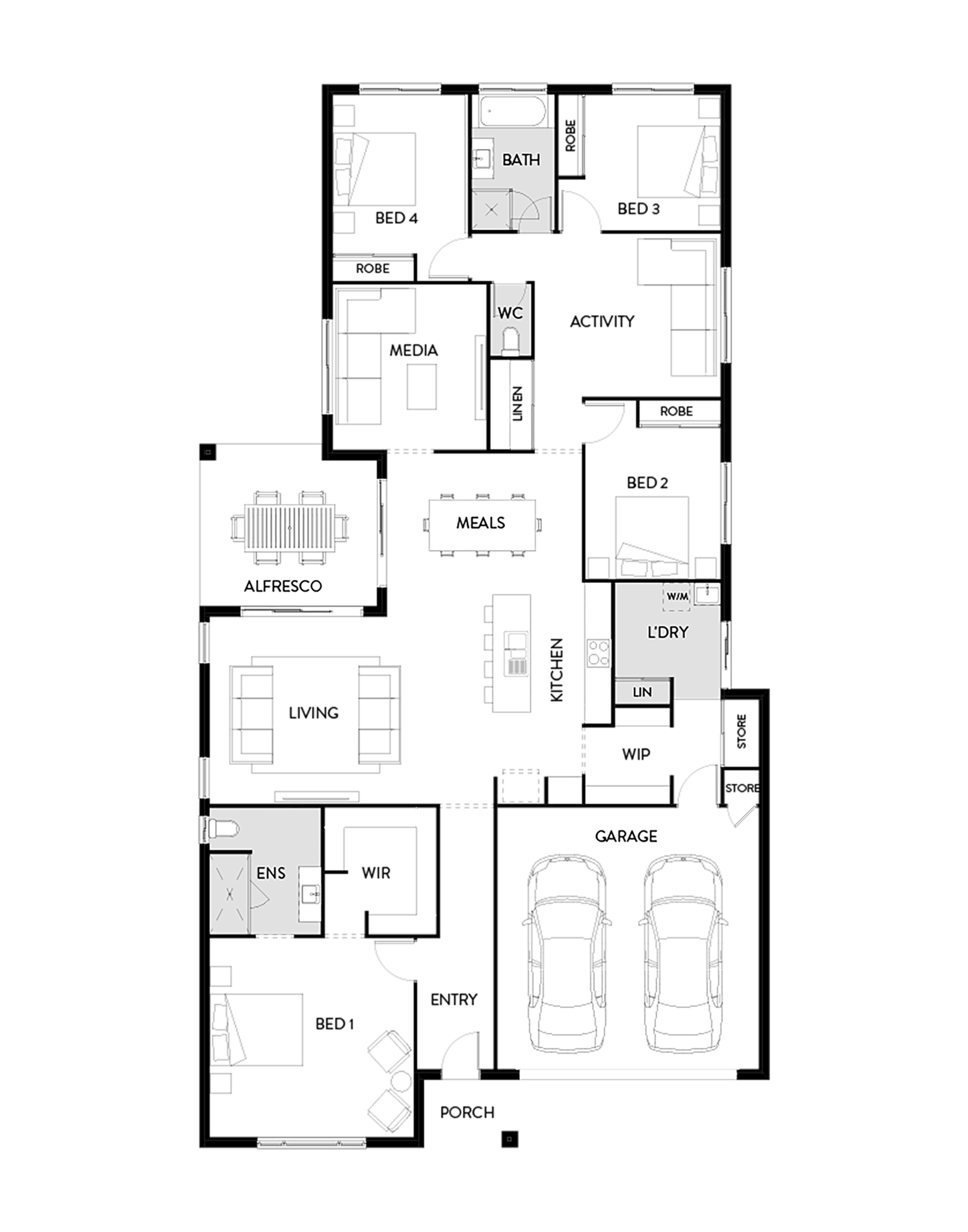 The Cedar 255 is a stunning open-plan home design that’s an entertainer’s dream with the living, dining, and alfresco areas located centrally within the home. With a gourmet kitchen ideally positioned to overlook the living area, and a large walk in-pantry, this home really has it all. The separate media room plus activity room will keep the kids entertained while the adults can relax in their private master suite sanctuary at the other end of the home.