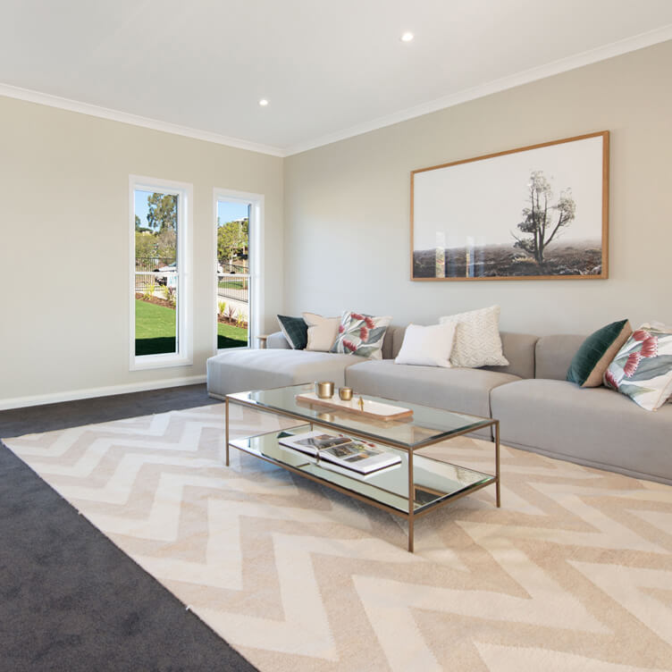 At Hallmark Homes, we offer a standard ceiling height of 2,400mm, with the option of upgrading to high ceilings – either 2,550mm or 2,700mm. We highly recommend that you check out our display homes to experience different ceiling heights for yourself. This really isn’t something you can get a feel for by looking at a floor plan or photos online. Your Hallmark Homes’ consultant is happy to discuss the various options with you to ensure you make the right choice for you and your family.